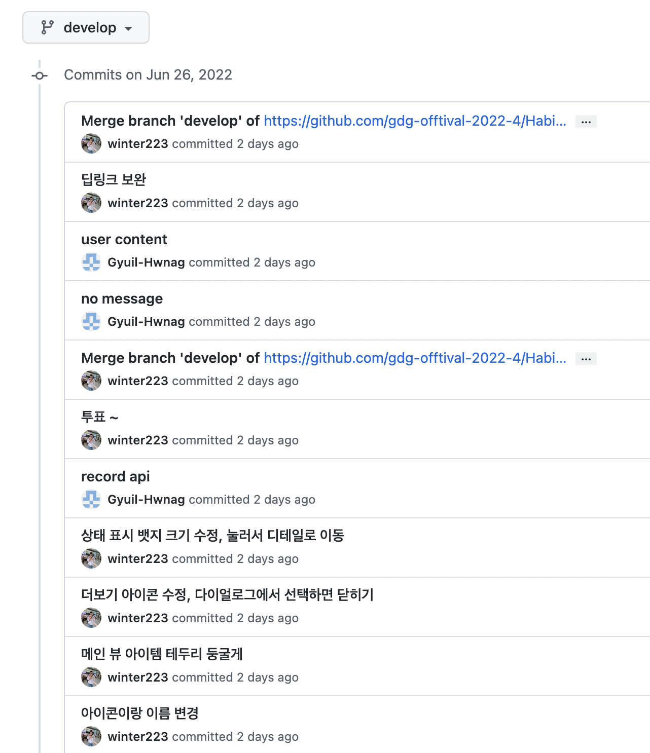 - develop 브랜치에 바로 push 하기